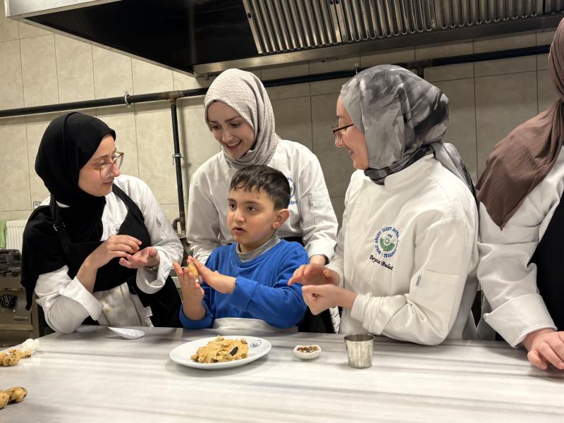Etkinlik kapsamında özel öğrenciler, bölüm öğrencilerimizle birlikte mutfak uygulamalarına katılarak kurabiye ve cupcake hazırlamış; gün boyunca düzenlenen çeşitli etkinliklere iştirak etmiştir. Program, özel öğrencilerin mutfak uygulamalarını deneyimlemelerine ve sosyal etkileşimlerini geliştirmelerine yönelik olarak planlanmıştır.