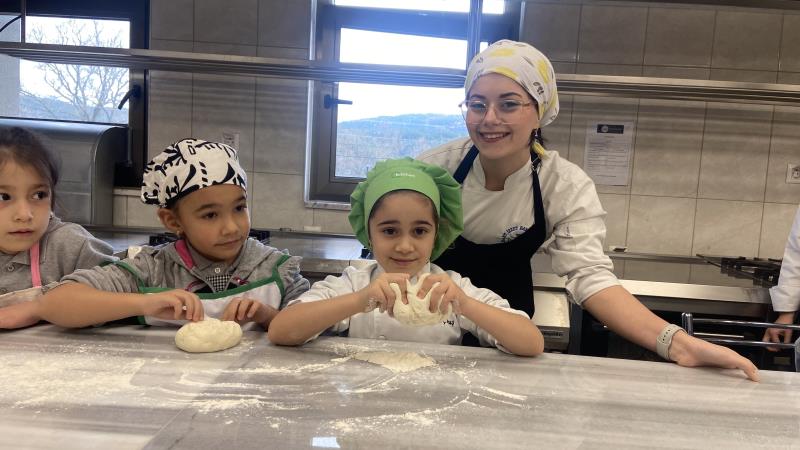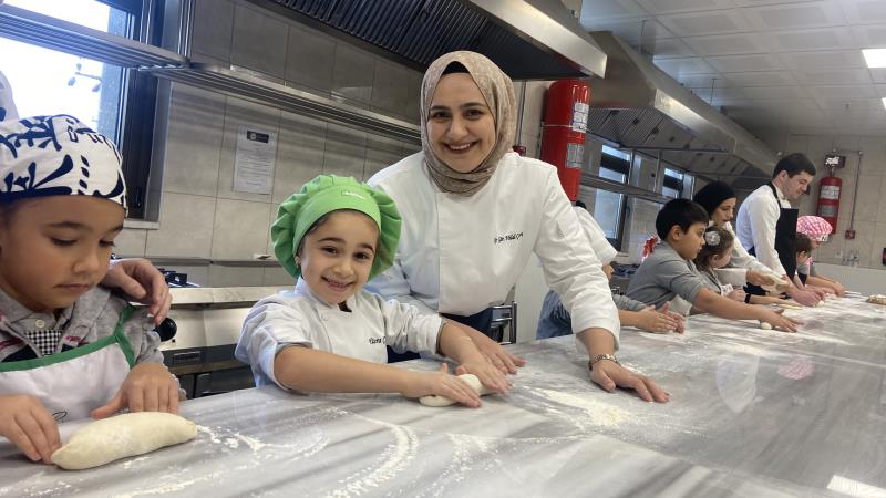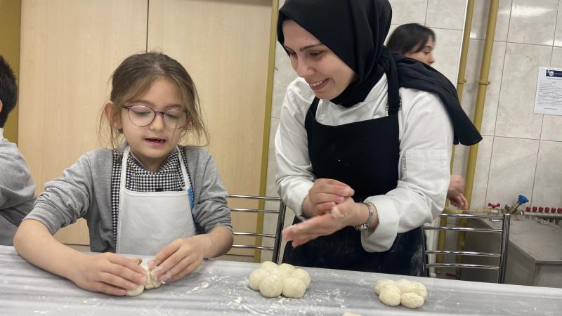 Etkinlikte öğrenciler, temel ekmek yapım sürecini uygulamalı olarak deneyimleyerek hamurun hazırlanması, yoğrulması ve şekillendirilmesi aşamalarına katıldı. Çocukların üretim sürecini yerinde gözlemlemelerine ve mutfak kültürüne yönelik farkındalık geliştirmelerine katkı sağlayan etkinlik, öğretici bir atmosferde tamamlandı.